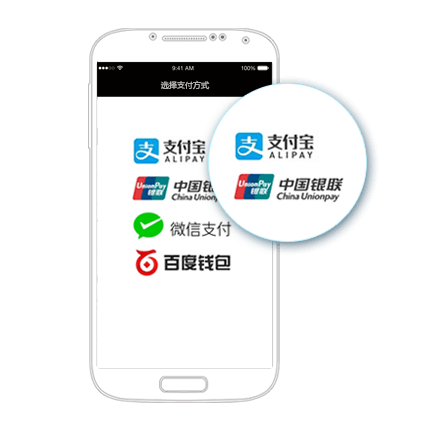 掌中宝支付平台,为iOS/Android原生/H5 App提供支付解决方案:支持微信支付、支付宝支付、银联手机支付、百度钱包等。